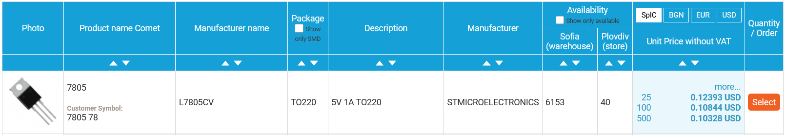 - Select the name of required component from Comet Electronics List of components. On this step, on the top, there is remainder, which name is under association at the moment .